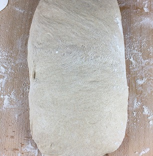 Hamuru unlanmış bir tezgaha bir spatula yardımı ile aldım. Önce bir tarafı katladım, diğer tarafı tamamen hepsini kapatacak şekilde üzerine örttüm. Göz kararı 4 eşit parça olacak şekilde hamuru işaretledim.