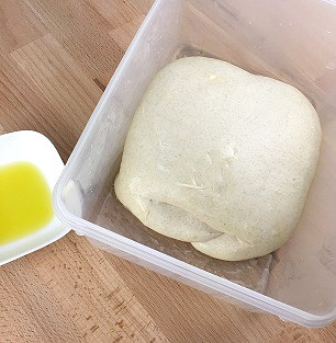 Hamur 1-1,5 saat oda sıcaklığında, üzeri kapalı olarak bekledi. Daha sonra elimi yağlayarak (veya ıslatarak) 1 tur, alttan, katlama yaptım ve ertesi gün görüşmek üzere (yaklaşık 24 saat vermenizi tavsiye ederim) dolaba kaldırdım.