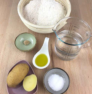 Öncelikle, her zaman olduğu gibi, malzemelerimi hazırladım. Patatesi önceden haşlayıp iyice soğuması için bekledim. 2 gr Yaş maya yaklaşık 2 nohut büyüklüğünde (kuru haliyle). Patates rendesi hariç tüm malzemeyi bir kapta buluşturup kıvamlı bir hamur olması için iyice yoğurdum. Patatesleri önceden atarsanız yoğurdukça hamur cıvımaya başlayacaktır. Halbuki iyi bir ekmek hamuru için hamurun yoğurulma süresi önemli. Rende patatesleri son 2-3 dakikada işin içine kattım. Hamuru toparlayıp, yağladığım, kapaklı olan bir kaba koydum.