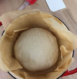 Hamuru unlamış olduğum tezgaha aldım ve kenarlarından içeri doğru katlayarak yuvarlak bir form verdim. Hamuru kenarlardan hafifçe ittirerek sıkıştırdım. Kat yerleri alta gelecek şekilde tencereye oturttum. Tencerede yaklaşık 3 saat 2. mayalanma gerçekleşecek.